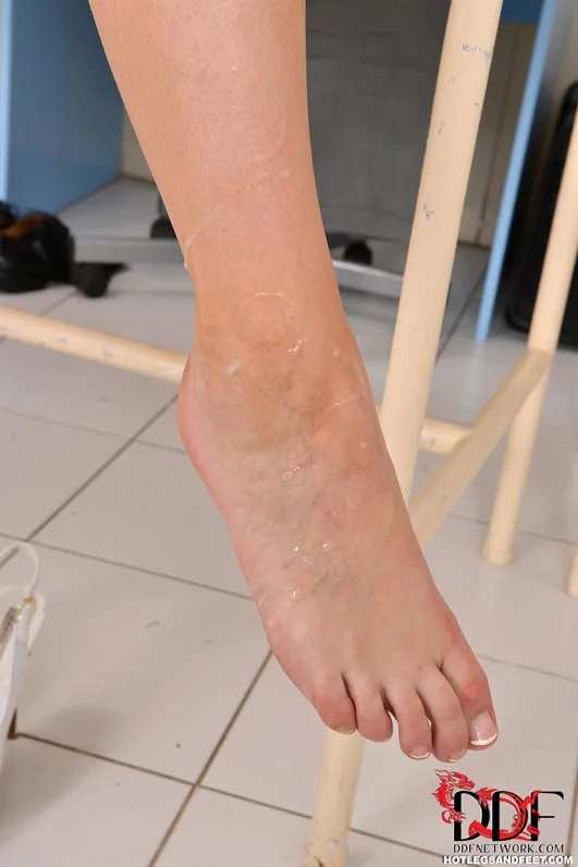 Длинноногая блондинка в чулках, сладкая кошечка, кончает доктору на босые ноги